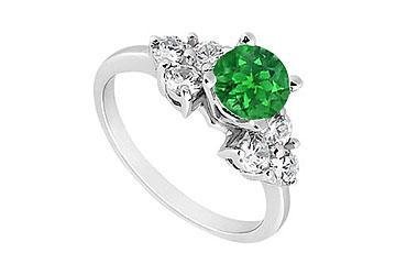 ~( ̄▽ ̄)~ Black Friday Emerald and Diamond Engagement Ring : 14K White Gold - 0.75 CT TGW Size 4 Deals