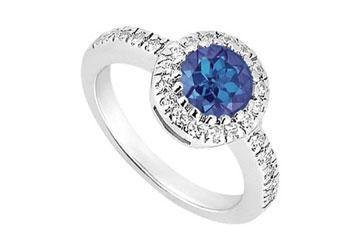 Black Friday Sapphire and Diamond Engagement Ring : 14K White Gold - 0.75 CT TGW Size 10 Deals